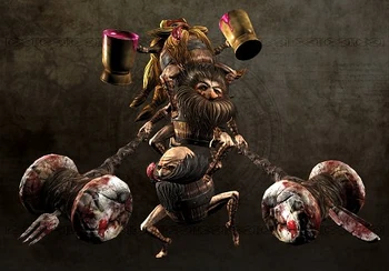 - Jumps up and lunges toward player smashing both hammers on the ground within a certain range. Can stagger the player if caught too close.